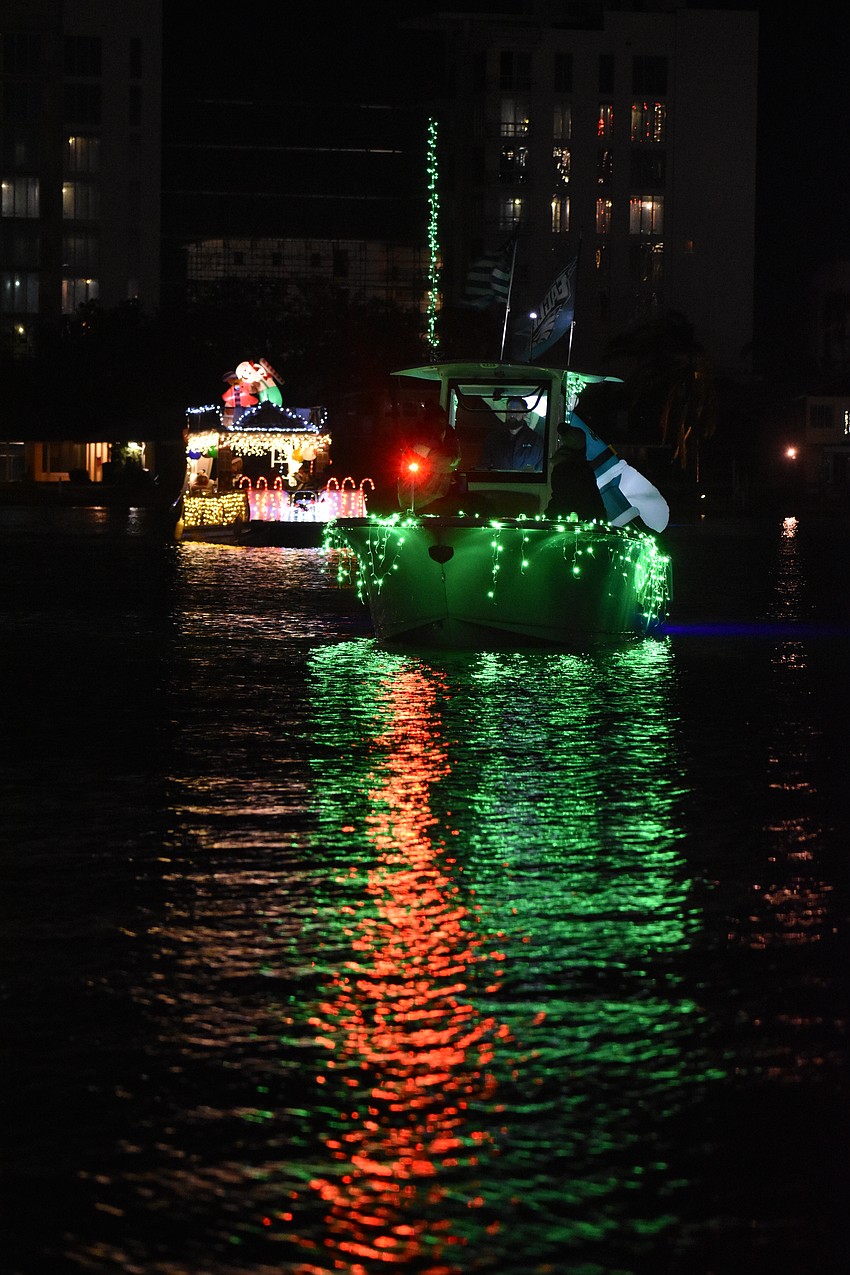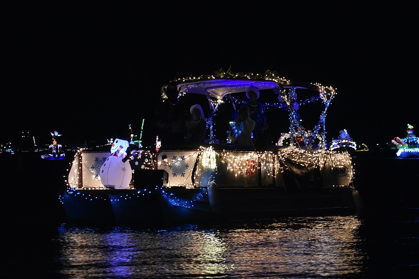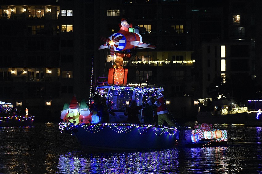 The banner "Joy to SRQ," found on the Lotus Yacht, summarized the concept of the Holiday Boat Parade of Lights, said Maiya and Stephen Gardner, the owners of the boat, which won first place in the category for private vessels 36 feet and over.