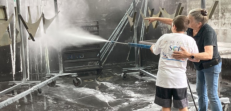 The boat, which usually sits in a shallow stream, never floats, but it has been waterlogged. As has the castle, which has flooded 15 times, and survived several major storms. The most devastating was Hurricane Ian in 2022, which poured in more than six feet of water. Smartly, the bottom sections of the walls are made of Styrofoam, which is easily replaced. Getting Solomon’s Castle up and running again after Ian was a Herculean task. Friends, family and the small staff worked long hours seven days a week, repairing and cleaning up. The artwork suffered very little damage. It took less than two months to reopen the gates, Alane says, adding, “I still can’t believe what we accomplished.”