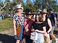 Bradenton's Mickey Wilson-Skarr and Northern Ireland's Dee Carr, Maureen McEvoy and Lacey-Lou McEvoy attend the Dakin Bull Bash. Carr has a second home in Bradenton. The hats are from Wilson-Skarr's wardrobe.