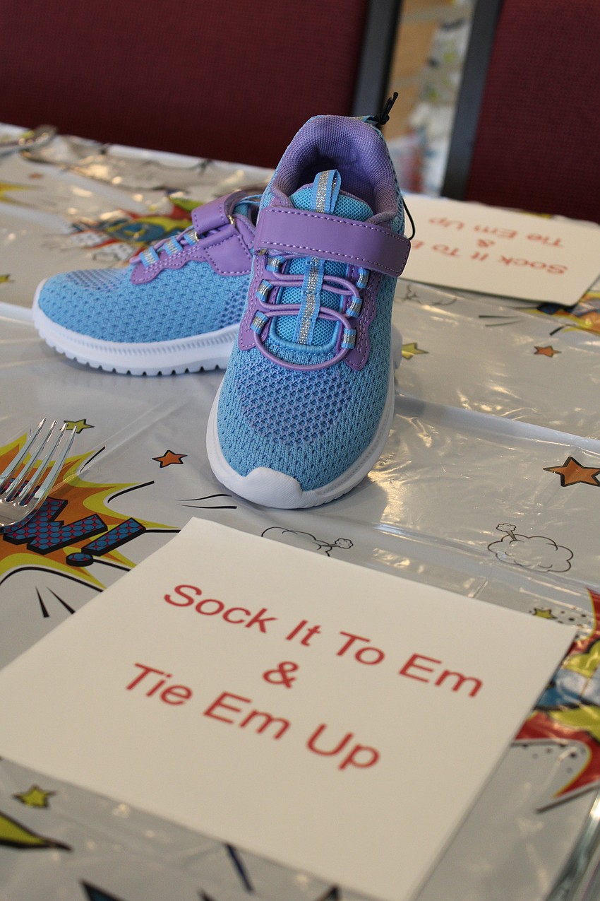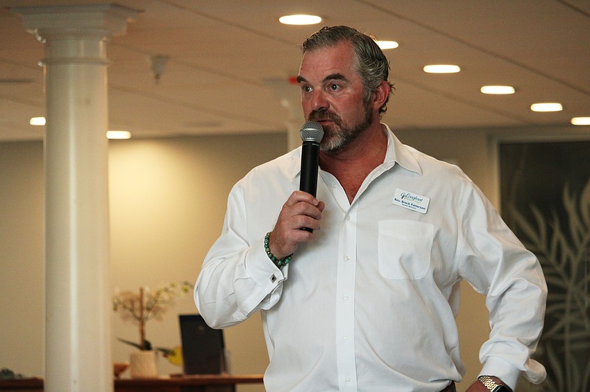 Longboat Island Chapel Rev. Brock Patterson thanked attendees at the Aug. 19 Gather and Give drive for their donations of athletic shoes, socks and shoelaces.