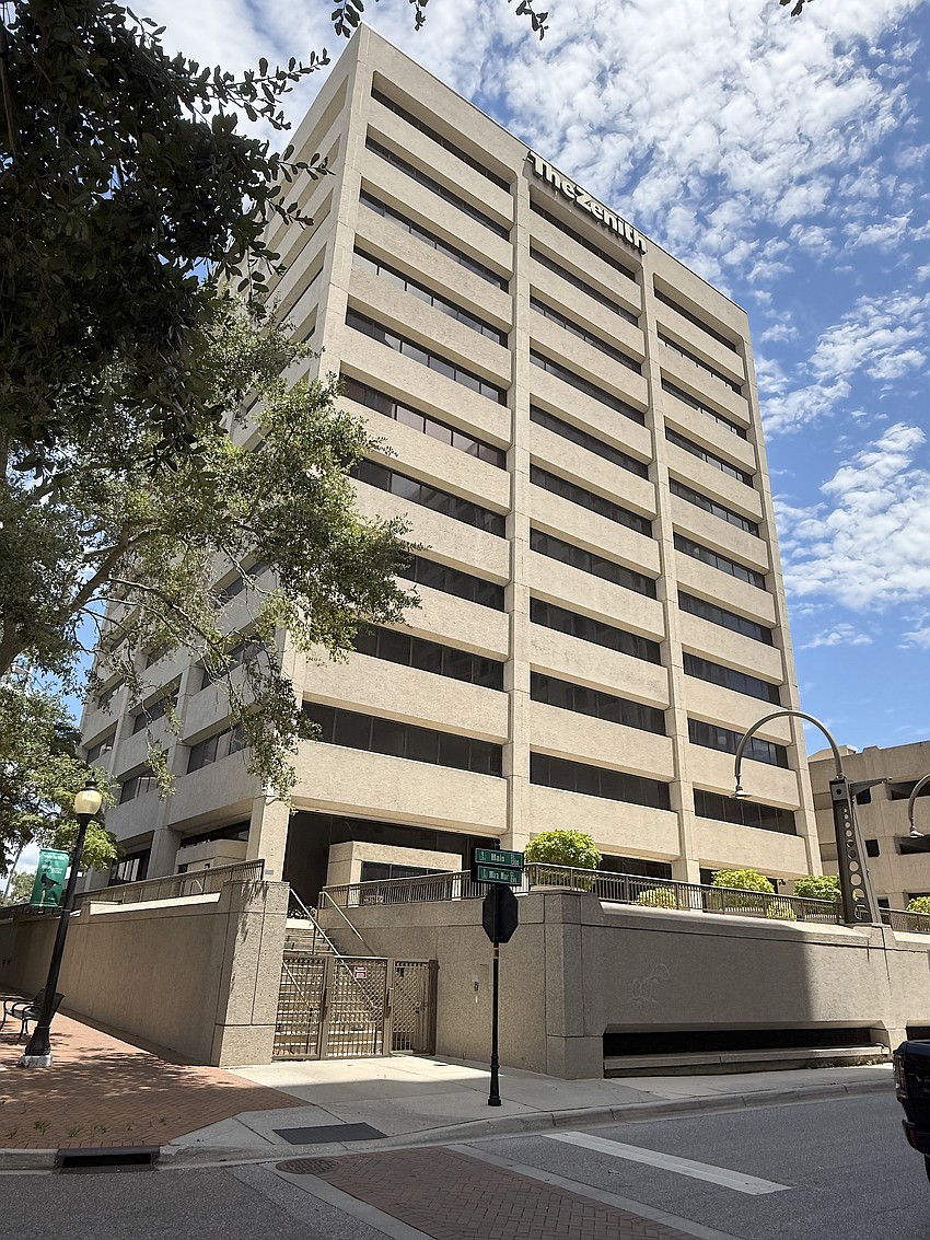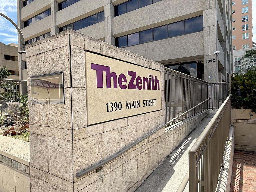 Existing on the just more than 1-acre site is the 12-story Zenith building, which is vacant, and a four-level parking structure at 1390 Main St.; and a two-story office building at 40 S. Pineapple Ave. The site is split-zoned with 1.07 acres in Downtown Bayfront, which permits 18 stories, and 0.11 acre in Downtown Core, which limits building heights to 10 stories. The entirety of the 18-story portion will be located in Downtown Bayfront and, thus, will not require rezoning.