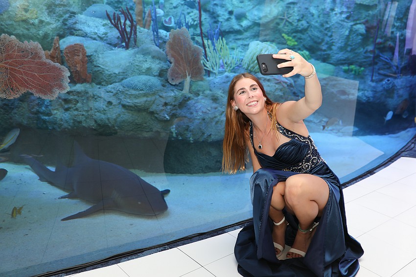Future marine biologist Madison McAvoy grabs a selfie with some of her underwater friends swimming in a 400,000-gallon tank at Oceanic Evening on Oct. 25. The annual fundraiser was its first in Mote Marine’s new Science Education Aquarium.