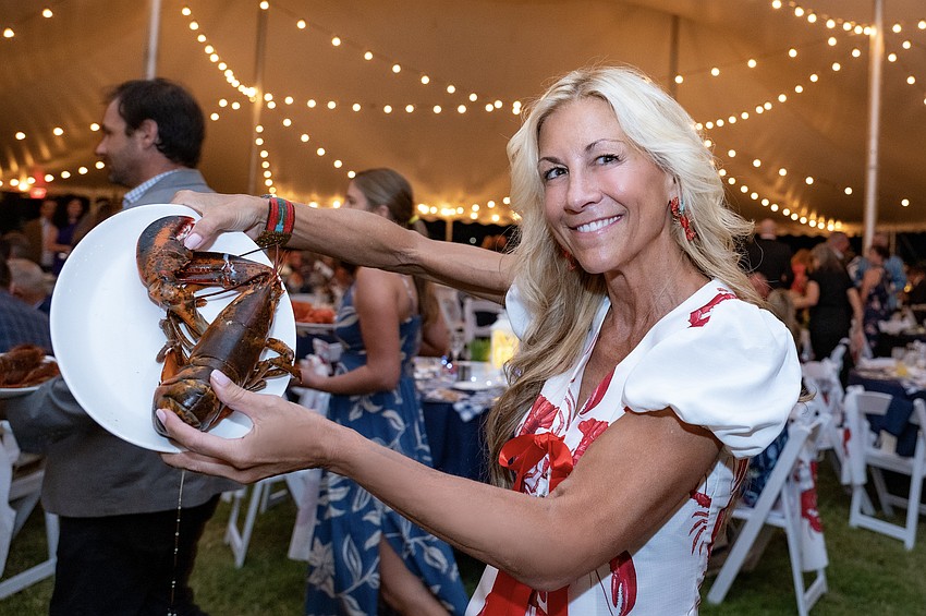 Gretchen Bauer shows off her lobster at the New College Clambake Nov. 6.