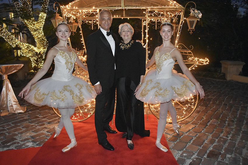 Tom and Tanya Morlock with Luci LeClaire enjoy the Van Wezel dressed up in a Moulin Rouge theme for the Sarasota Performing Arts Foundation’s annual gala March 21.