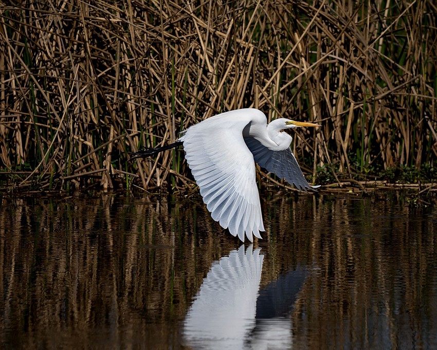 Christopher Harrington captured this photo of a white heron soaring over a lake in Celery Fields.