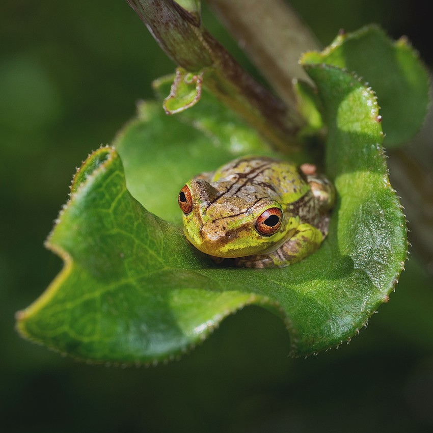 Christopher Harrington captured this photo of a Cuban tree frog nestled in a leaf in Celery Fields.