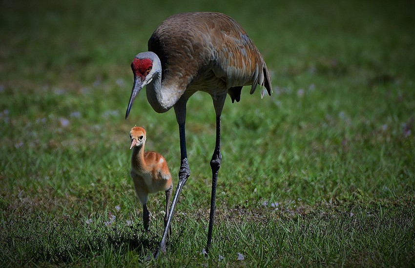 Gordon Silver took this photo of a Sandhill crane and a colt checking out the camera along University Parkway.