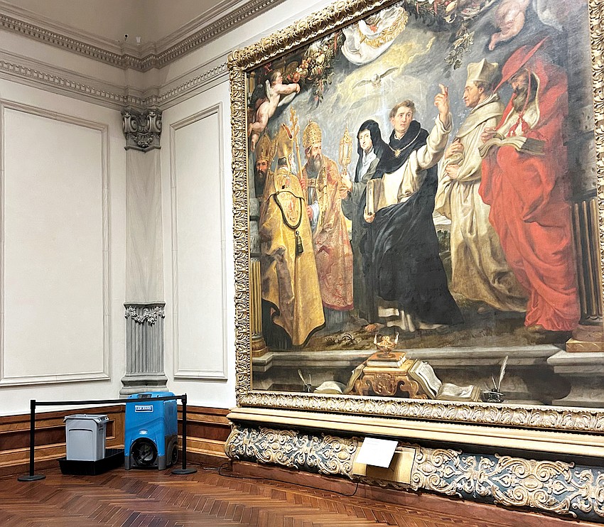 Next door, the Ringling Museum had and has similar signs of neglect. Look at the accompanying photo of the famous Rubens gallery — trash receptacles to catch leaking water, while dehumidifiers hum in corners of the room to keep the priceless paintings from deteriorating. A volunteer said there are longstanding HVAC issues for which the museum has been trying for years to get the funding. Finally, he said last month, improvements should come this December.