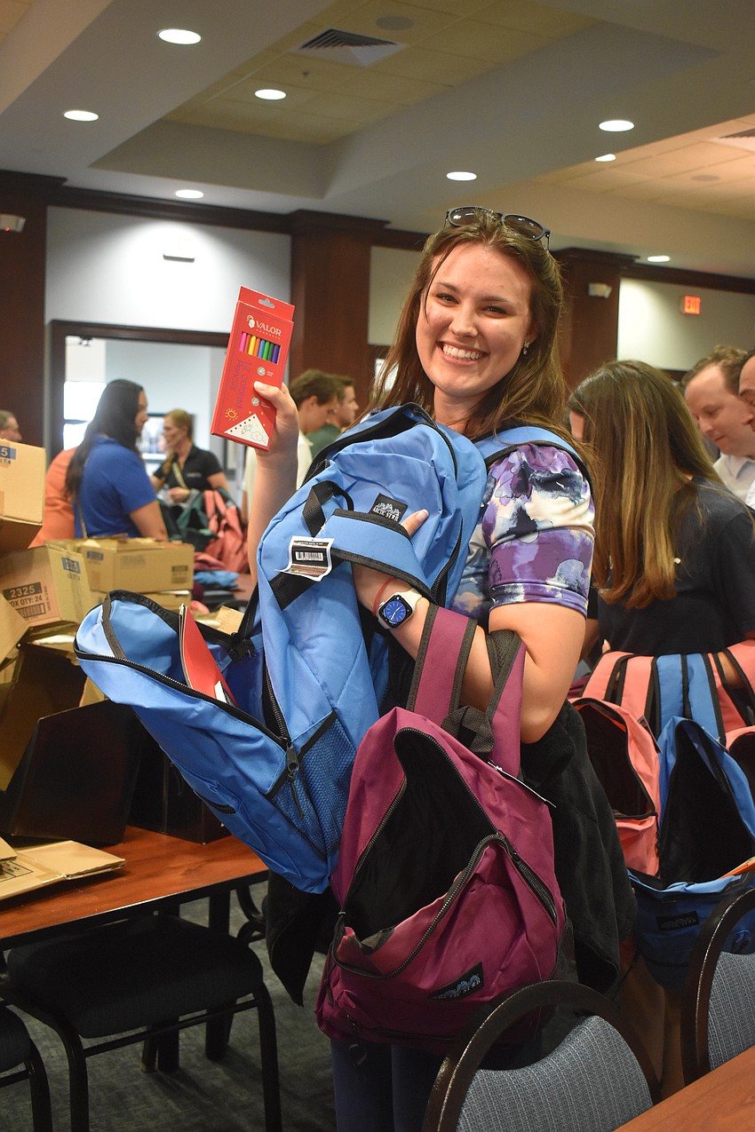 Lakewood Ranch resident Megan Schroeder serves as the Young Professional Committee co-chair. She was part of the team to cold call businesses and ask for donations so the group could donate as many backpacks and supplies as possible. She was a volunteer for the event last year and helped distribute the backpacks to kids in Sarasota County.