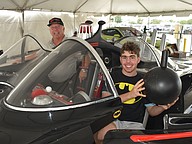 Eugene Nock of Longboat Key (pictured with his son Garrett Nock, 17) owns a Batmobile from the 1960s "Batman" TV series starring Adam West, which he showcased at the event.