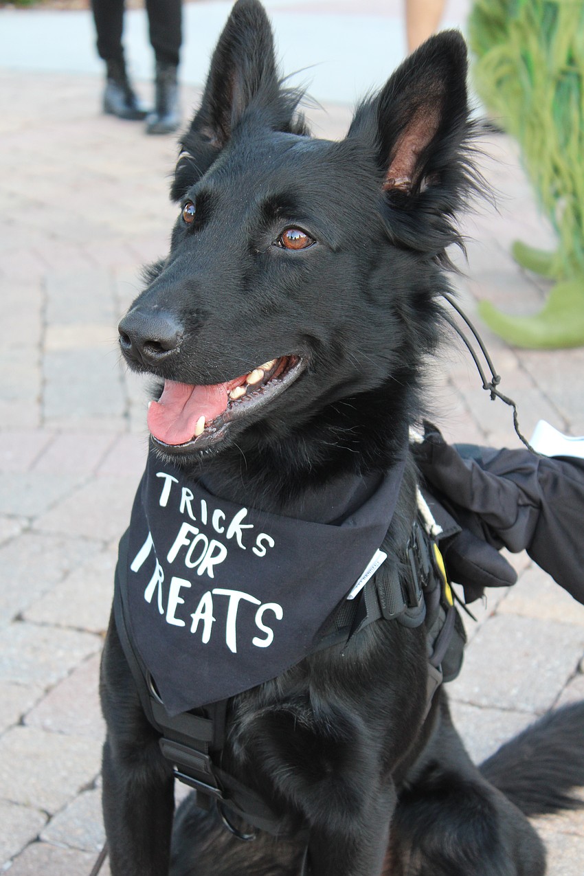 Rake, working with LMK K95 dog training, hopes to trade tricks for trades at Fright Night on St. Armands Circle.