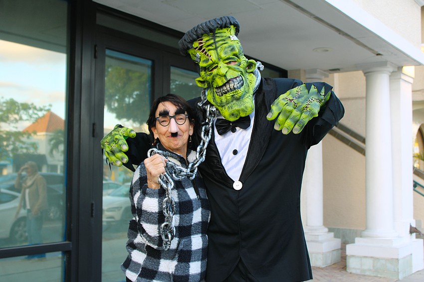 Linda Wexler keeps Frankenstein's monster from going on a Halloween rampage during Fright Night on St. Armands Circle.
