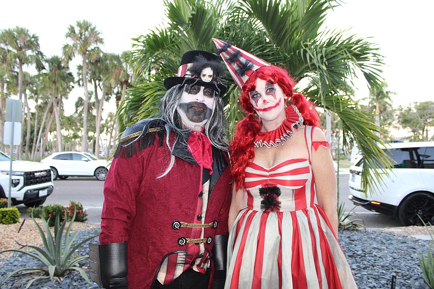 Fernando and Kelly Harb put the "fright" in Fright Night on St. Armands Circle with their spooky circus ringleader and clown costumes.