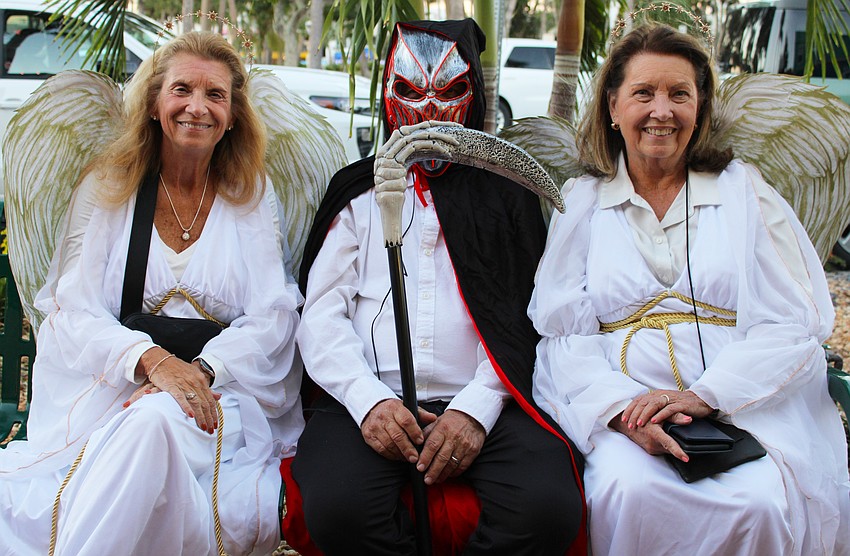 Carl Lee Waldbillig is flanked by his angels, Joan Legler and Anne Waldbillig, at Fright Night on St. Armands Circle.