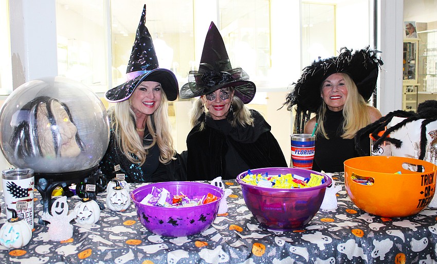 Witches Jackie Bryne, Darlene LeBaron and Brenda DuCray pass out candy to trick-or-treaters at Fright Night on St. Armands Circle.
