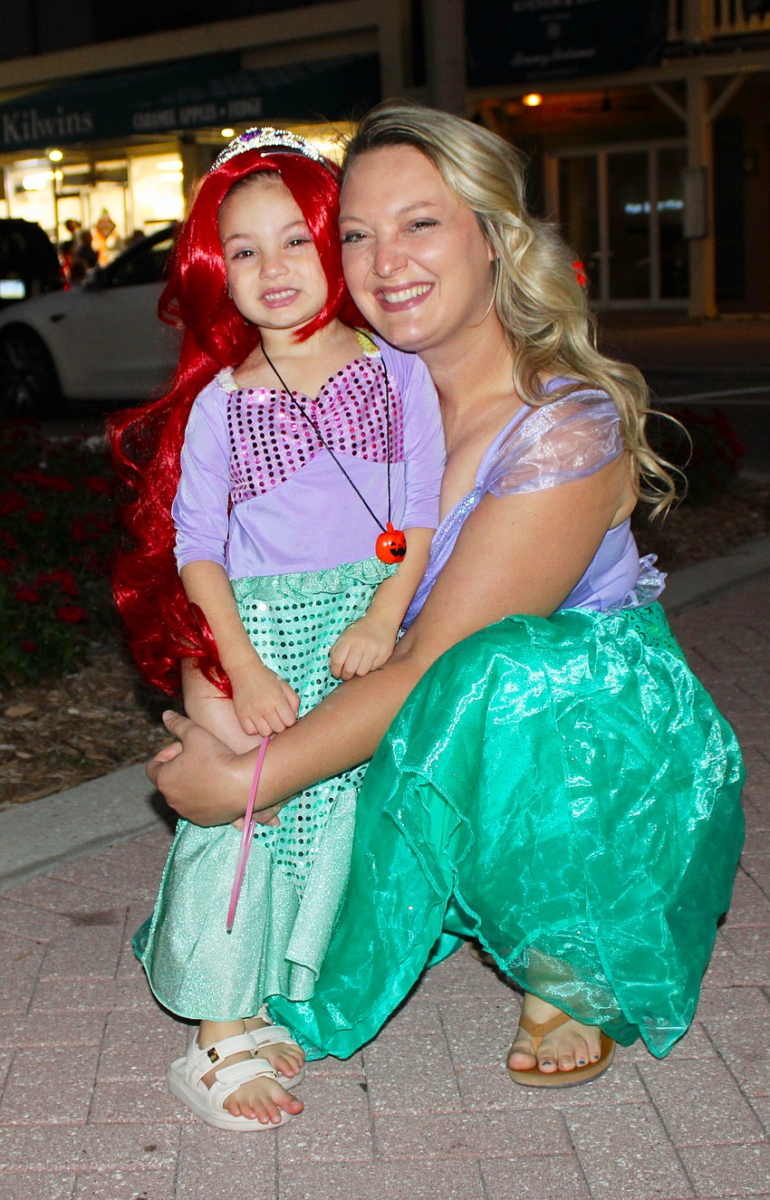 Dressed as Ariel, Tiffany and Amelia McDermott were elated to later run into some other trick-or-treating mermaids at Fright Night on St. Armands Circle.