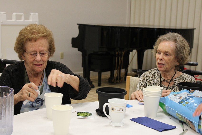 Doris Morgenstern and Nancy Eisenstat both helped with planting flowers for an environmentally friendly tashlich at Temple Beth Israel.