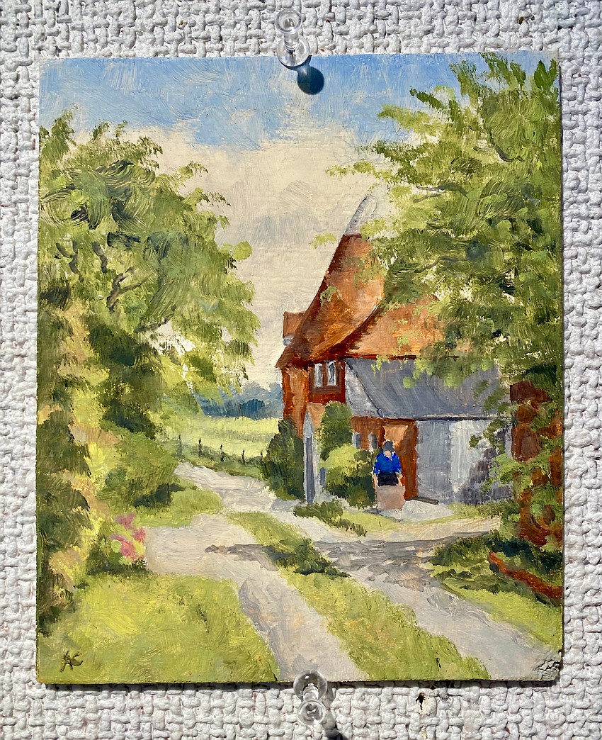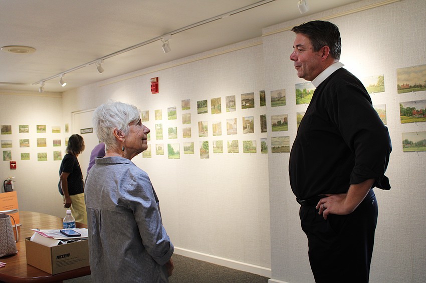 She hung the paintings with volunteers Bill Hayes, Nancy Scanlon, Grace Riker and Doriel Rock Boyce at All Angels. The church will have the paintings on display through November, and they are available for purchase at a flat $60 each.
