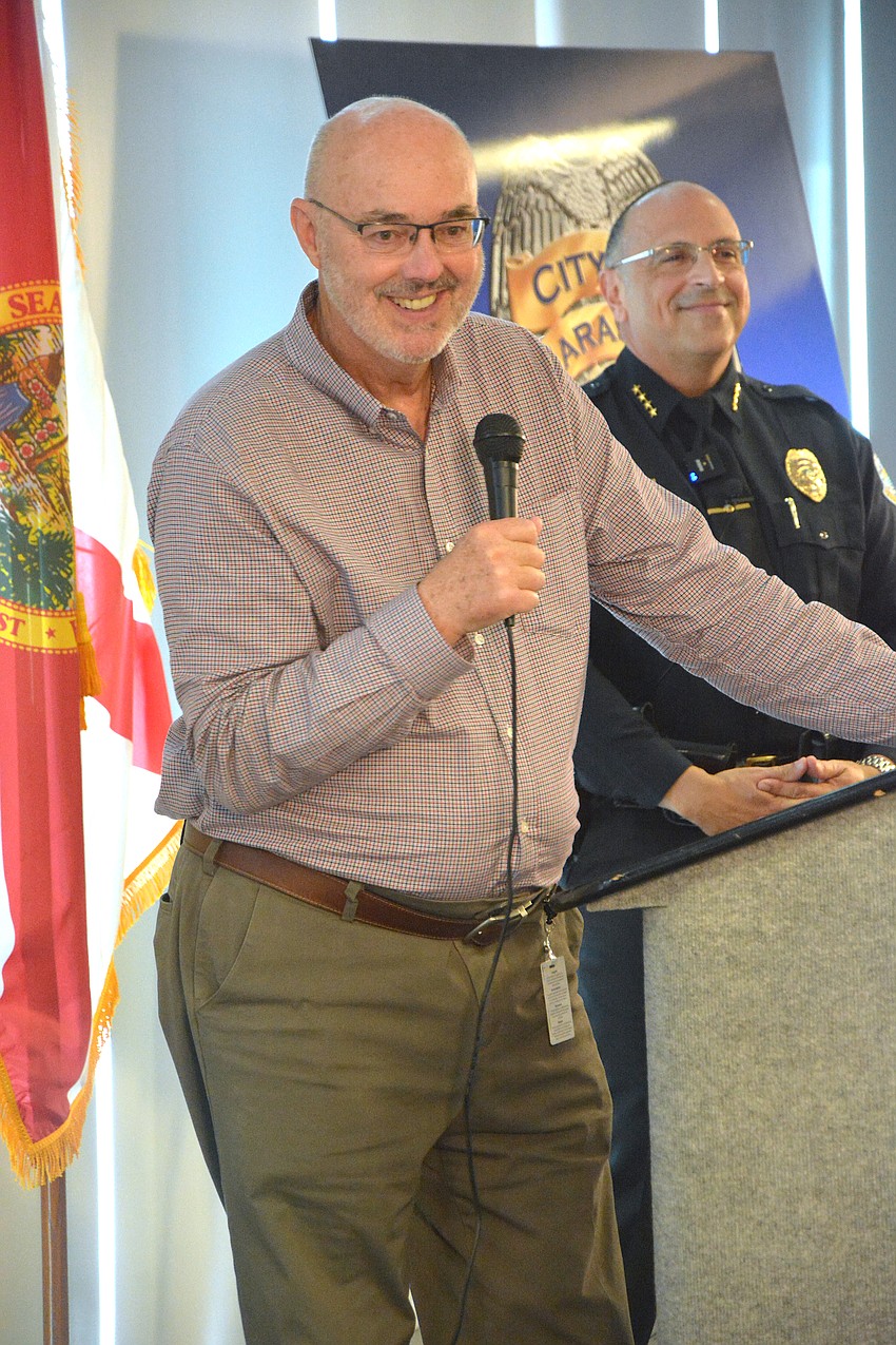 After reciting those three words that define the core values of the Sarasota Police Department as challenged by Deputy Chief of Police Scott Mayforth, the next class of five officers were officially pinned as members of the agency.