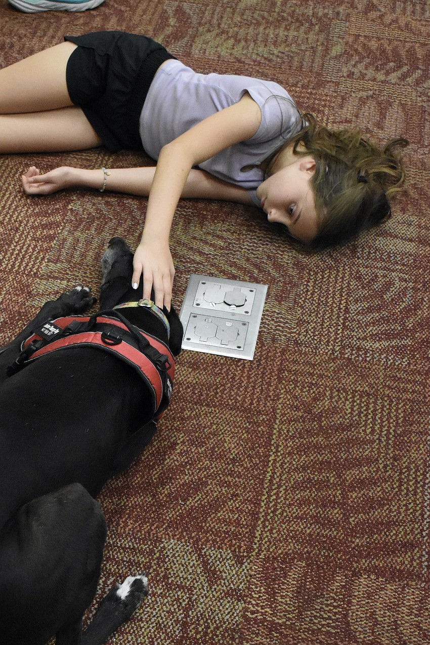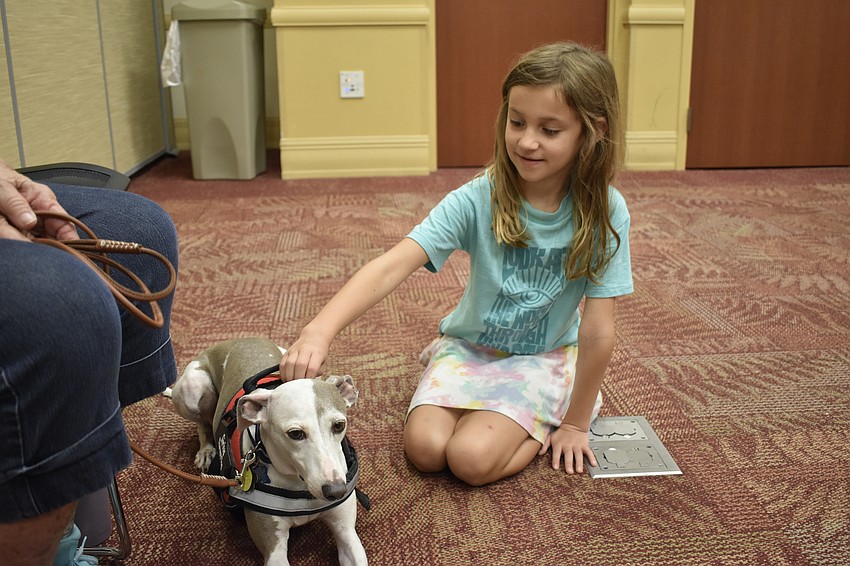 Last month, Hulvat was present again as a small handful of kids turned out to enjoy, cuddle, and read to three dogs, including two dogs from the Humane Society of Sarasota County.