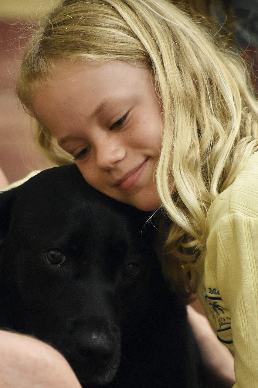 It is evaluating the organization's therapy dogs to make sure they don't jump and they settle down, making them comforting to people, including kids.
