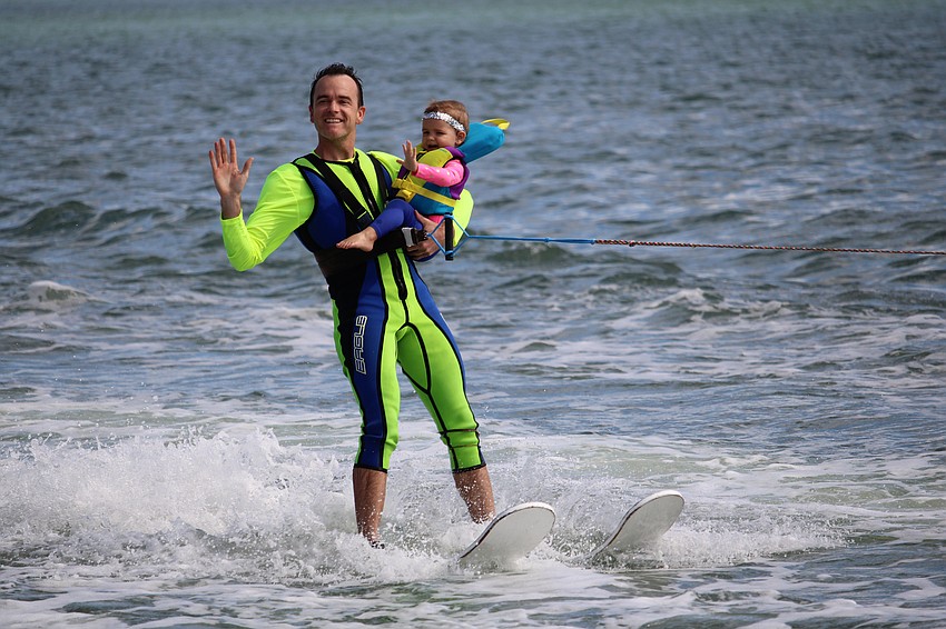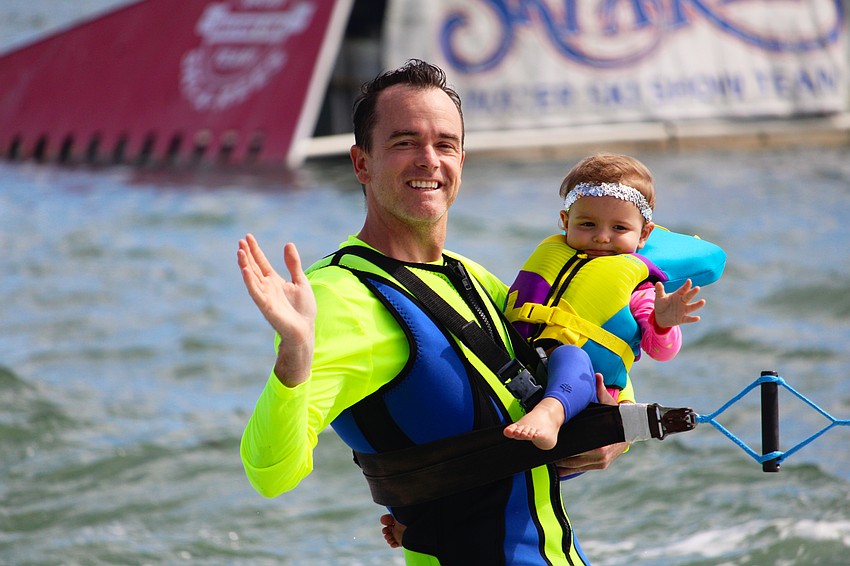 Lance and 2-year-old Lyla Robbins hit the water on Sunday at Sarasota Bay with the Sarasota Ski-A-Rees for the fourth of six shows this season.