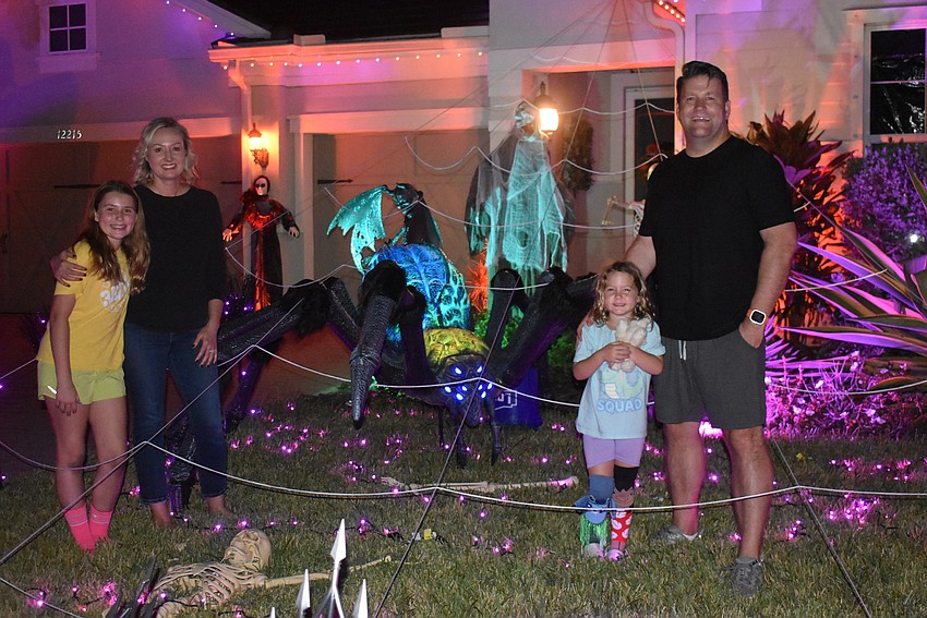 He's been accumulating Halloween decorations since 11-year-old Olivia Goetsch was a toddler, so just about every inch of the yard is spoken for by a spider or a gargoyle at this point.