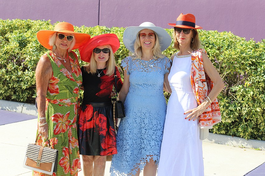 Suzanne Van Gundy, Debbie Maltese, Karen Neilinger and Penny Hill on their way to a garden party.