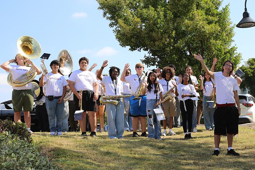 The Booker High School band plays during Pique Nique on the grounds of the Van Wezel..