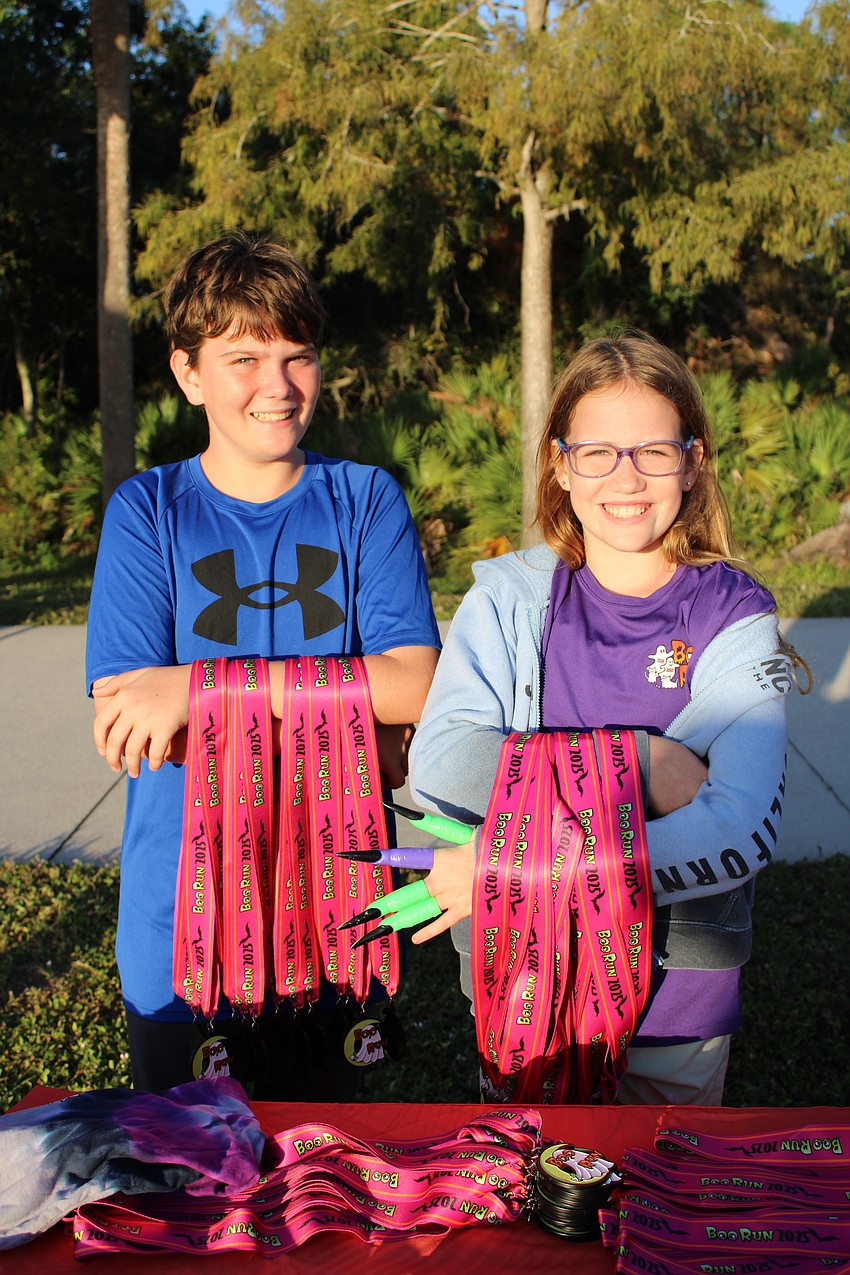 Brother and sister duo Declan Bates, 13 and Libby Bates, 10, normally run in the race, but they decided to volunteer this year by passing out medals instead.