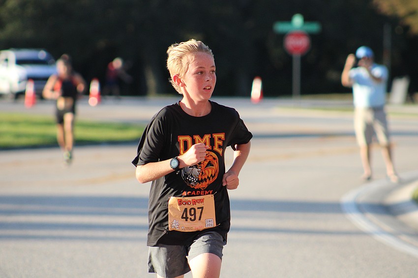 Sarasota's Jack Gruters is the first child to finish the 5k with a time of 20 minutes and 50 seconds.