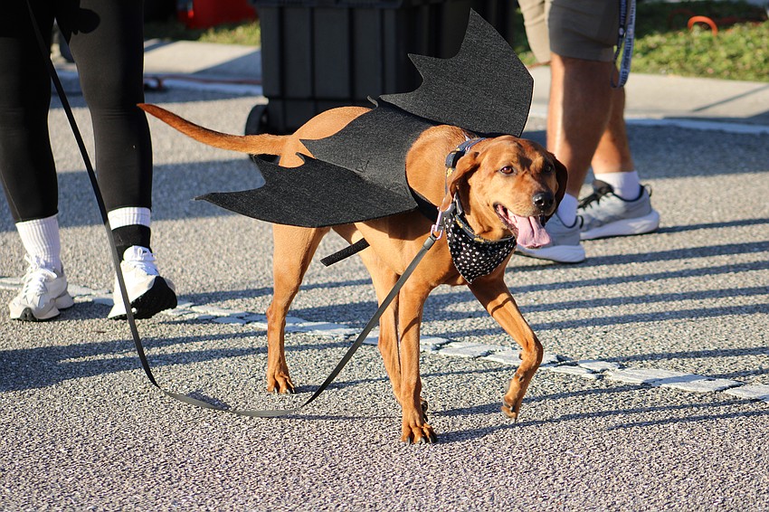 Ruby, a 5-year-old redbone coone hound, is a rescue from the Humane Society at Lakewood Ranch and is dressed as a bat. She did the race with her human, Lakewood Ranch's Rebekah Boudrie, who dressed as Batgirl.