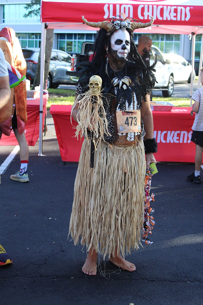 After running in the Boo Run for the first time last year as a caveman, Lakewood Ranch's Mark Steinke returned to do it again in full costume as a witch doctor.