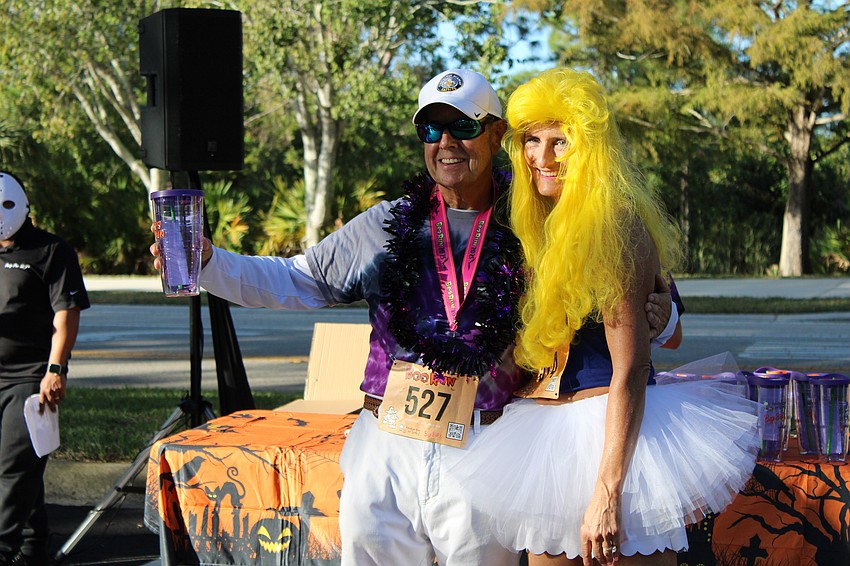 Bradenton's John Donovan, who places third in the male 70+ age category, poses with Jen Tullio, the race director and mother of Grayson Tullio.