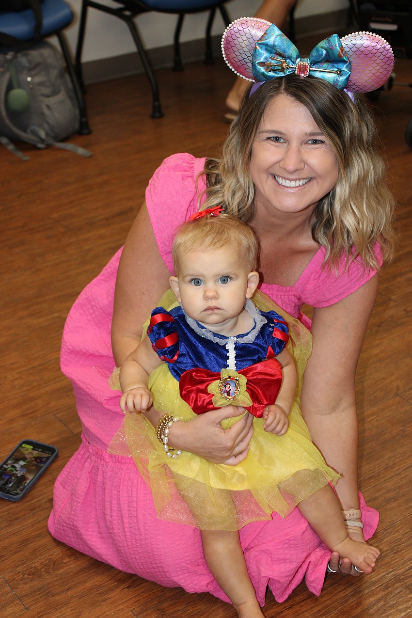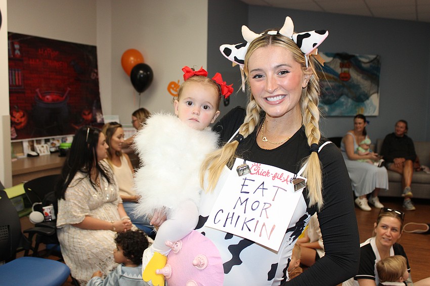 1-year-old Venice and mom Whitney Van Burk of Lakewood Ranch get ready to get on the mooove for the parade.