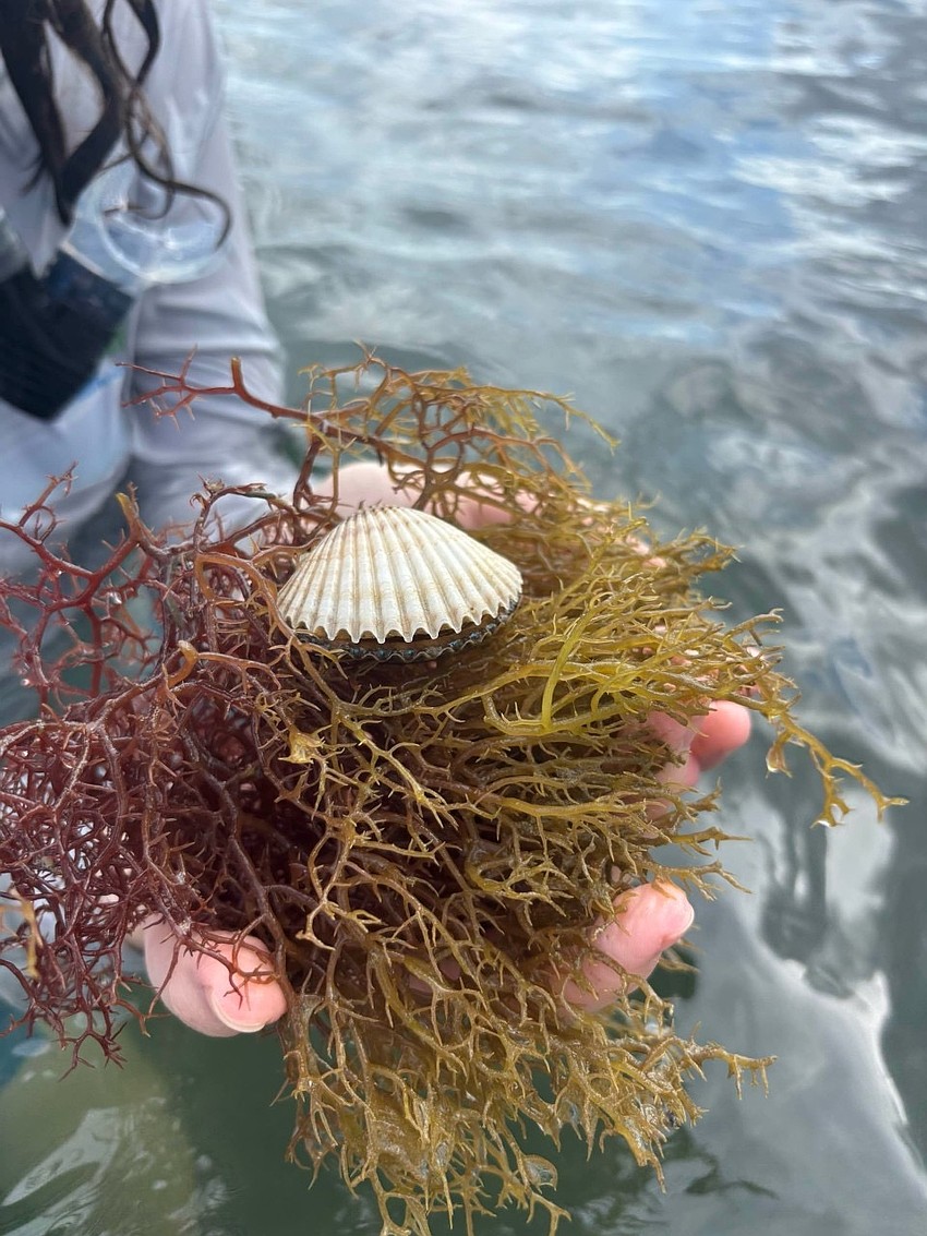 Sophia Haakman, a Sarasota Bay Watch member of several years and founder of the local chapter of the Florida Young Birders Club, holds up a bay scallop she found during the Great Scallop Search of 2025.