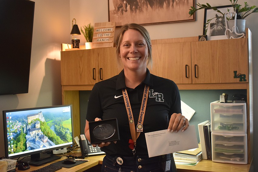Dustin Dalquist, the principal at Lakewood Ranch High School, is impressed that Shea took the time to nominate Biggs for the award.
