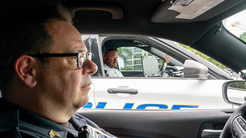 Longboat Key Police Department Sgt. Sean Butler (left) pulls alongside officer Michael Mathis Friday, Sept. 12 on Gulf of Mexico Drive. Butler said the department makes an effort to hire officers with experience and diverse backgrounds. For example, Mathis was previously a narcotics investigator in Coweta County, Georgia; Butler worked on homicides at NYPD; Sgt. Adam Montfort was a detective in Ulster County, New York; Jimmy Barrett was in the marine unit in Miami; Gregg Pescuma was previously a chief warrant officer with the Coast Guard; Dallas Troyer is a U.S. Army veteran and former road deputy in Pueblo County, Colorado; and Justin Ramsaier worked in active shooter response with NYPD.