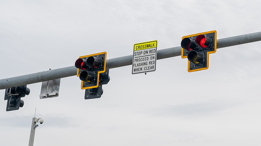 On Gulf of Mexico Drive, there are multiple examples of pedestrian crosswalks. Florida Department of Transportation’s updated pedestrian signals (pictured) have flashing red and yellow lights. The red lights begin to flash when a pedestrian presses a button to signify their intent to cross the road. The light will go from flashing red to solid red to allow pedestrians to stop traffic and back to flashing red. A flashing red light means drivers may proceed if the pedestrians have finished crossing the road and the coast is clear. Other pedestrian crosswalks on the Key display only a flashing yellow light, which alerts drivers to yield to crossing pedestrians.