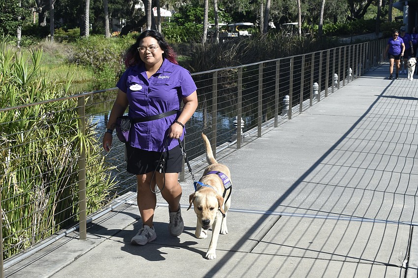 Service dog instructor Katrina Verzosa said the organization likes to bring its dogs in training to places that the recipients of the animals will visit.