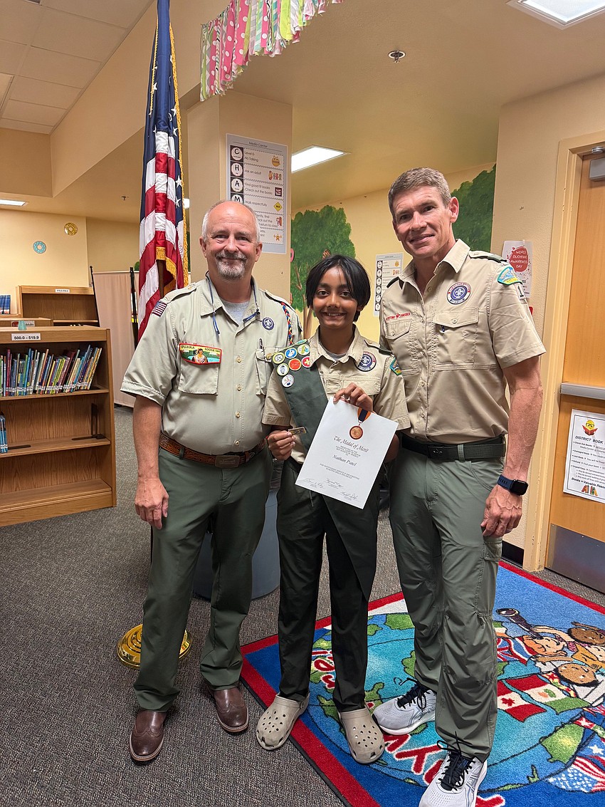 At a troop Court of Honor on Sept. 9, Patel was presented with the Medal of Merit, an award given to a select few Scouts and recognizing "an act of meritorious service above and beyond what is normally expected."