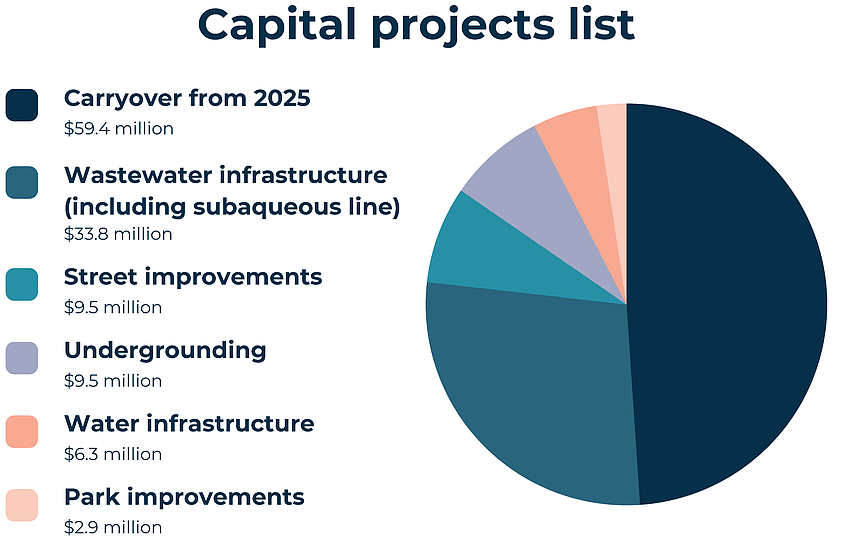Capital projects, which total just over $122 million, are major infrastructure projects such as streets, canal dredging and beach renourishment. The town’s budget lists a one-year capital projects list, which will be funded in the next fiscal year, and a five-year capital projects list which shows how the town is planning future major projects.