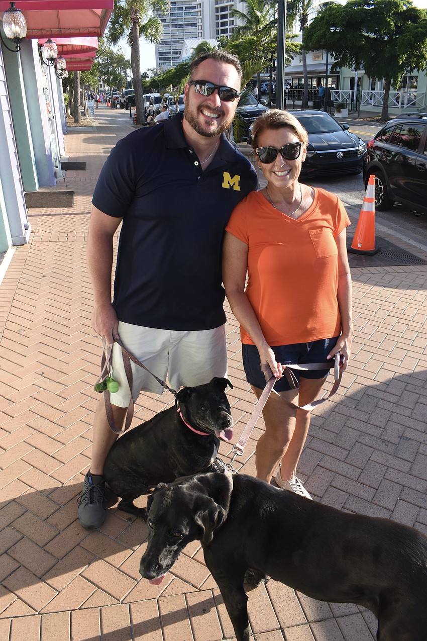 Nathan Rodesiler and his wife Kendall Rodesiler walked their dogs Coco and Jazmine in Siesta Key Village.
