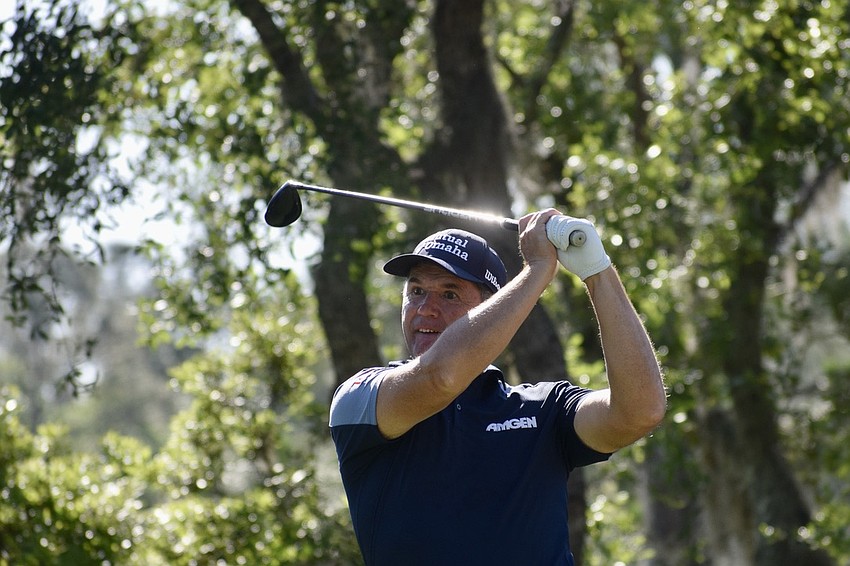 All golfers pause to read the green before attempting a putt, so there isn't anything unique about what Henrik Stenson is doing here. But the composition of this photo — taken on the eighth hole during the second round — looks terrific to me. With the edge of the bunker in the foreground, it gives you an idea of how unforgiving the greens at The Concession can be. Miss a putt by a few feet, and you could find yourself beached.