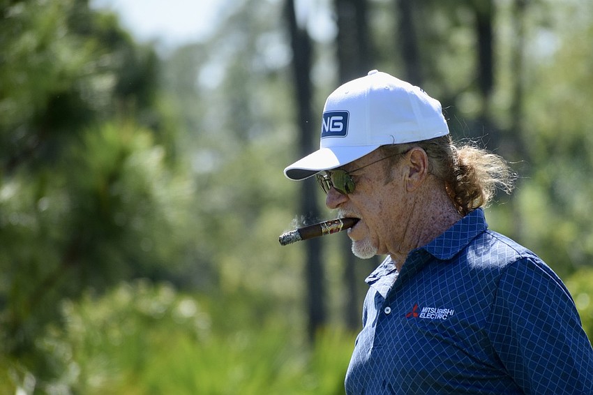 Miguel Ángel Jiménez has gained a reputation in the golf community for his smoking habits. Enjoying a stogie or two on the course hasn't hurt his game, since he's won 17 times on the PGA Tour Champions. He enjoyed some puffs here while walking the 18th-hole fairway during his second round.