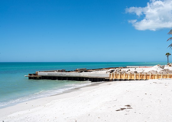 The concrete structure that protrudes into the Gulf more than 100 feet has been a dominating presence on the north end of the Longboat Key shoreline for decades, garnering headlines about public vs. private beach access and downstream erosional impacts of the structure.