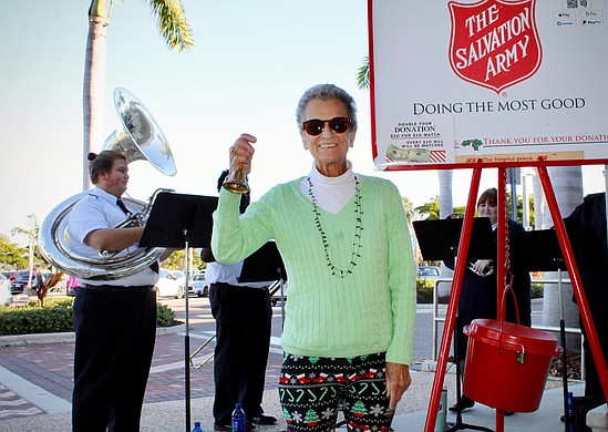 Shoppers visiting the Publix Super Market at 525 Bay Isles Parkway during the holidays often found themselves met with the smiling faces and ringing bells of volunteers for The Salvation Army. On special occasions, they were joined by a lively band and a rosy-cheeked Santa Claus.
