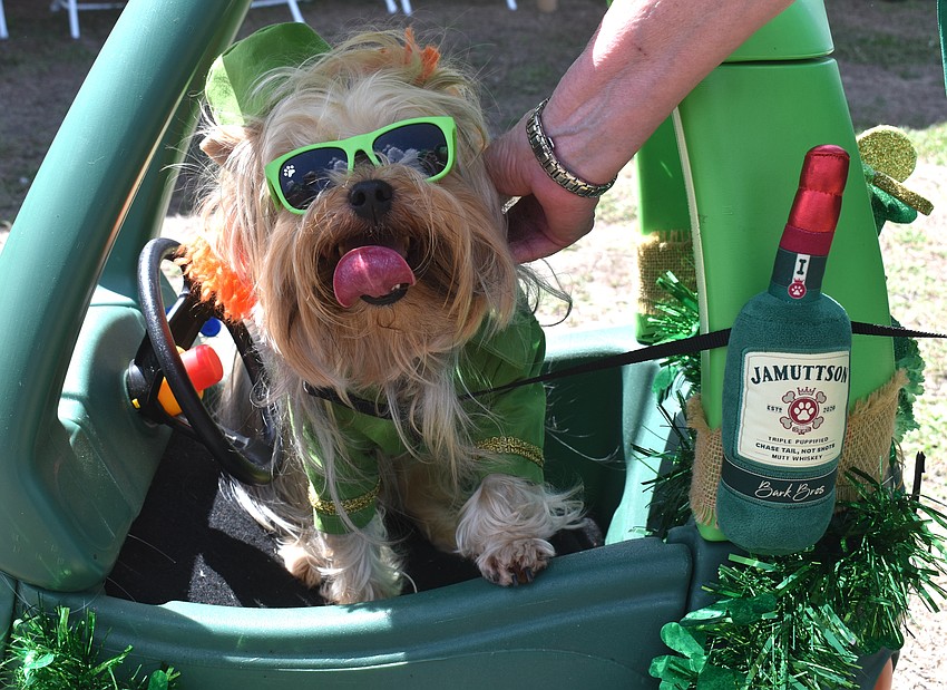 "Mister Lucky Charm" aka Bentley, dresses in style for the Lucky Dog Parade at the Irish Celtic Festival. He and his owner, Gail Yeager from St. Petersburg, won best overall costume.