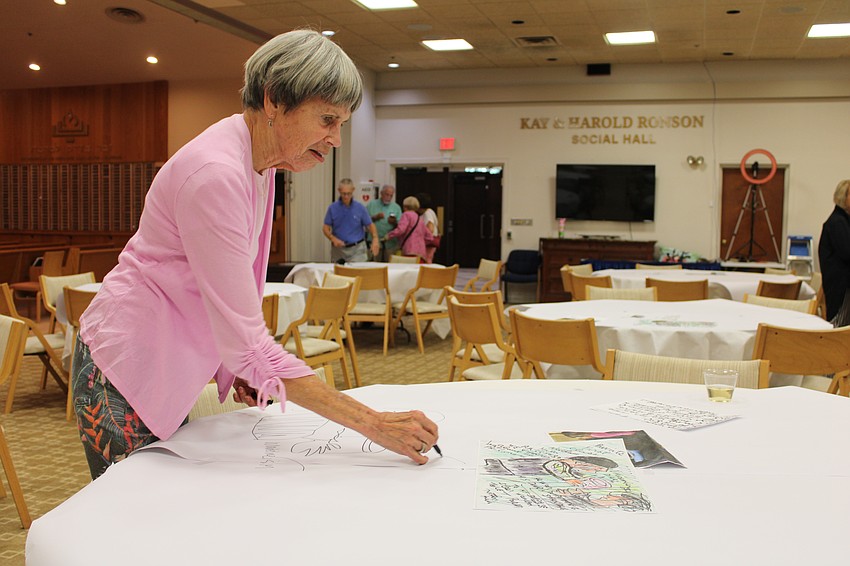 At the March 6 showing, the scratching of Hilu's signature thick black Sharpie against paper carried through Temple Beth Israel while a full house of viewers followed along.