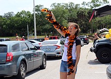 Sarasota High teachers cheer on seniors as they pick up graduation garb